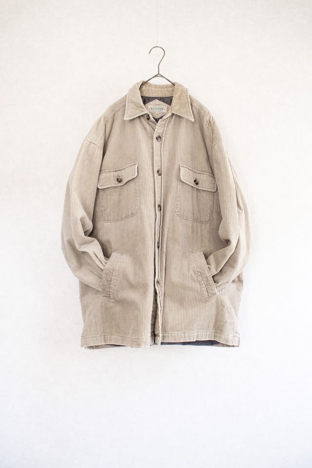stroll:散歩 太畝のコーデュロイを採用したシャツジャケット 60'sライクなラウンドポケットと2つのサイドポケット アウトドア/トラッドをベースにした、柔らかなアーストーンも好印象です 1990's stroll shirt jacket 真っ先に思い浮かぶフーディーとのレイヤーは勿論、 キャップが似合うメンズはタイドアップも期待できます [ material ] シェル:綿 100% ライニング:ナイロン 100% [ size ] 表記:L 肩幅:59cm 身幅:65cm 裄丈:59cm 着丈:77cm [ sample ] -- [ condition ] A-B フロントに薄くシミがあります 撫でると畝による光沢が起こり、 背面にムラがあるように写っておりますが実物に変色はございません +A/beautiful condition 着用形跡が少なく、保管状態も良好な品となります。 +B/used condition 着用によるシミや着色、ホールなどが見受けられます。 スタイリングに影響しない範疇ではありますが、特筆すべき点は個別に記載いたします。 +C/vintage condition ヴィンテージ特有の経年変化・ダメージが見受けられます。 [ Information ] 当店のお取り扱い商品は全て、経年変化を伴うユーズド・ヴィンテージアイテムでございます。 初めてご利用頂くお客様に向けてのガイドラインは、WEB STORE内のABOUTページにてご案内させて頂いております。 ご不明点につきましては、DMよりご連絡頂けたら幸いでございます。