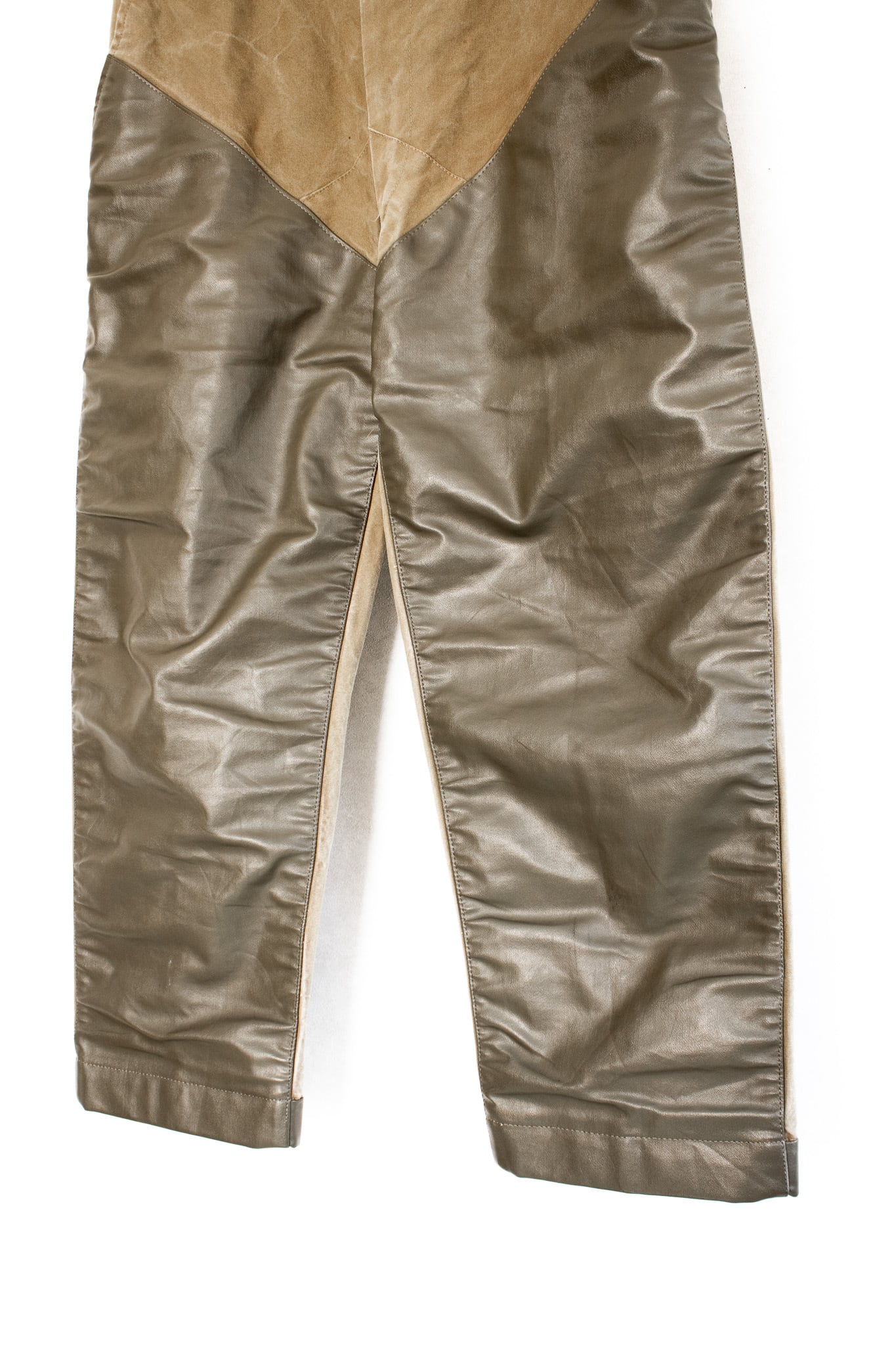 アーシーな生地とレザーの艶の掛け合わせが面白く、