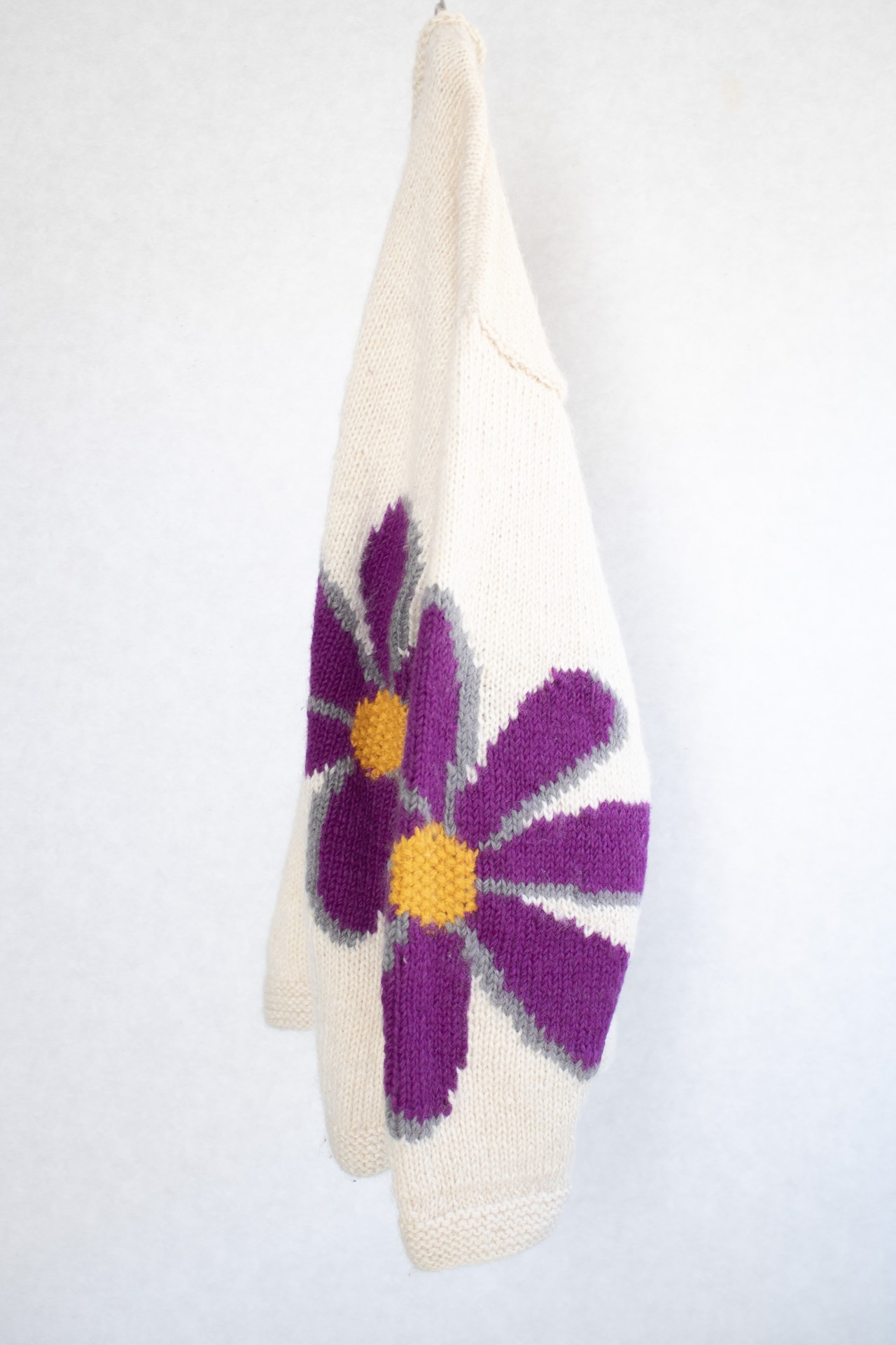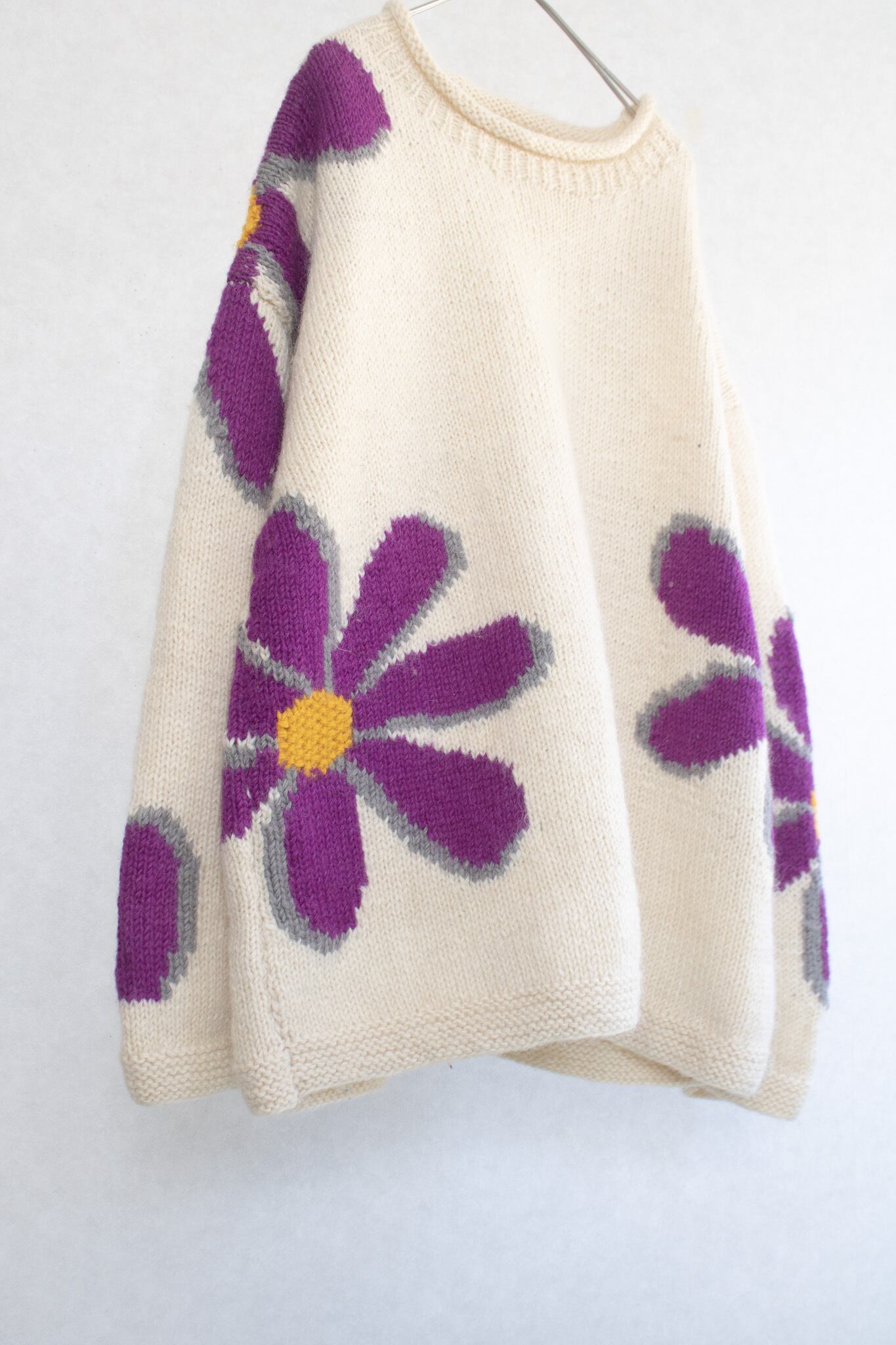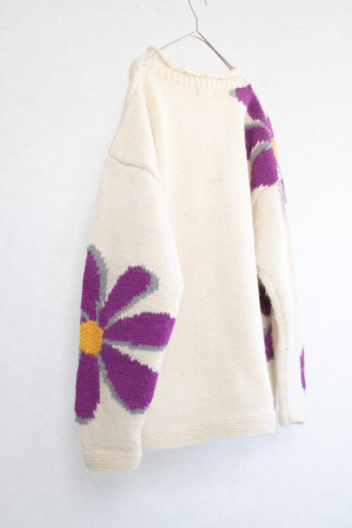 1980's "Romney" daisy art knit sweater / Made in Ecuador