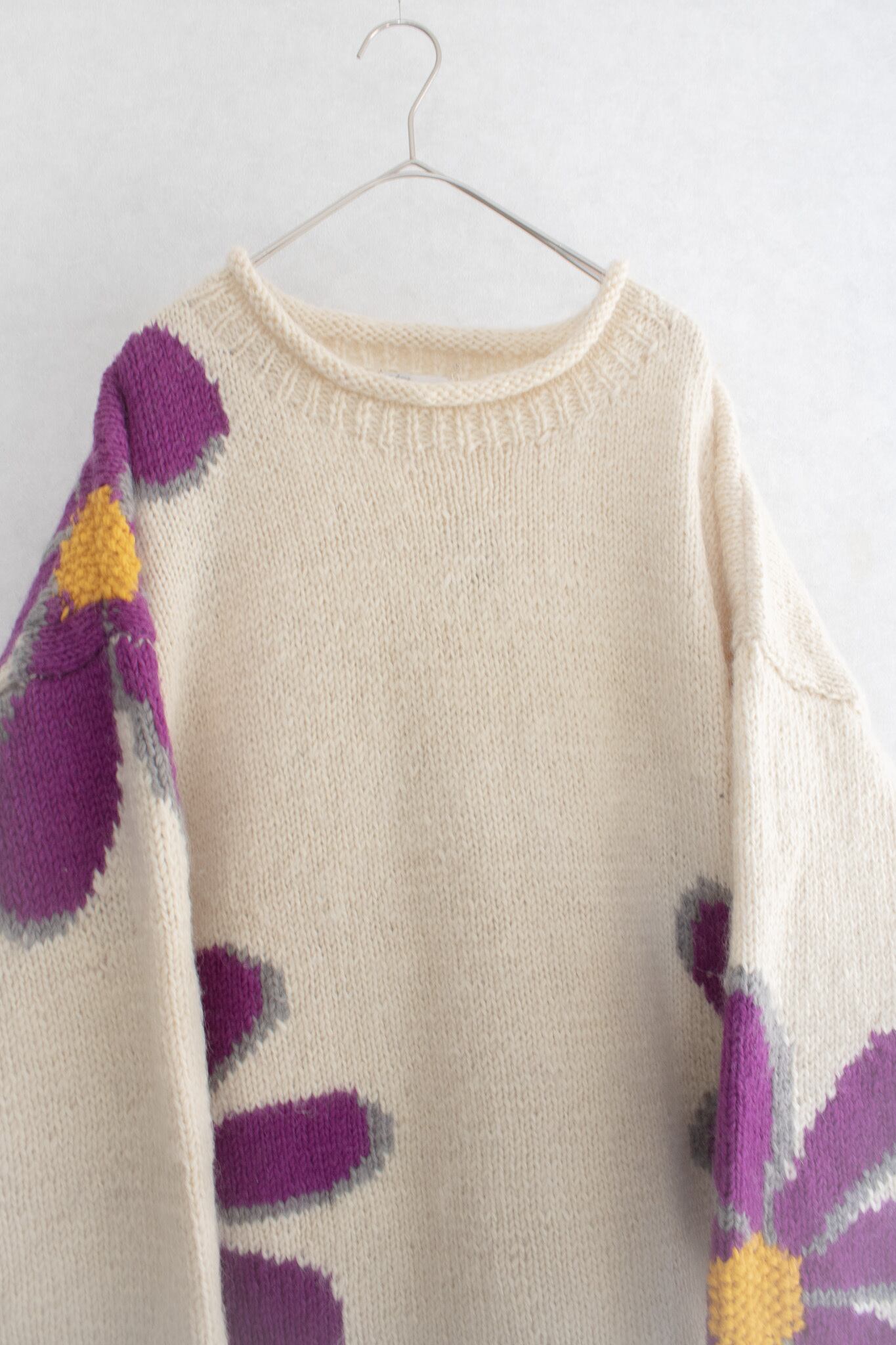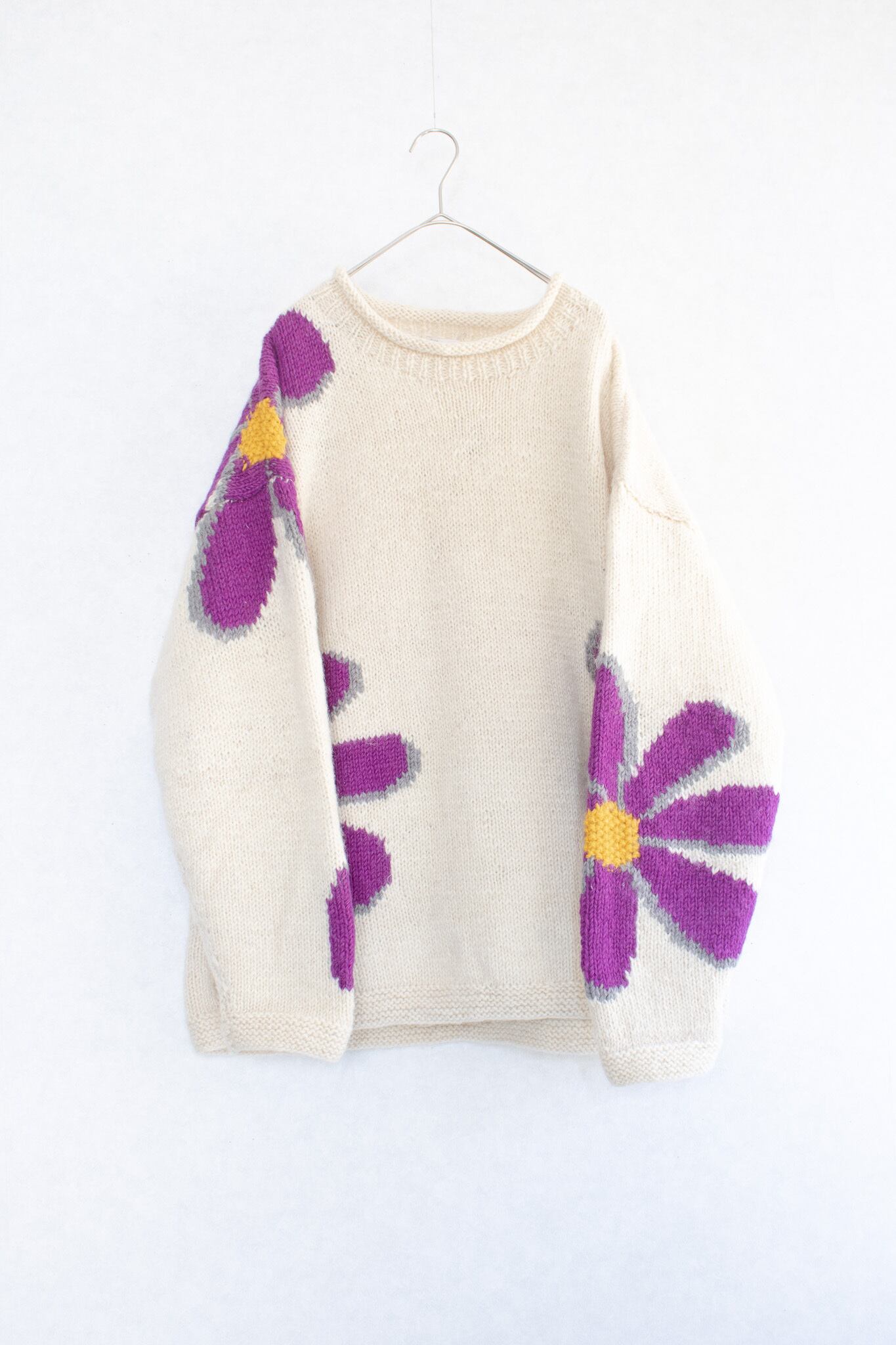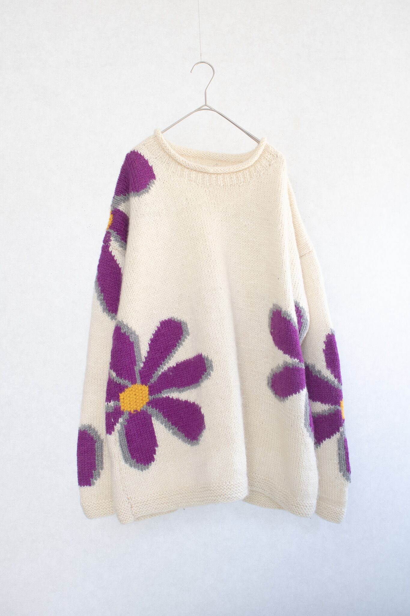 1980's "Romney" daisy art knit sweater / Made in Ecuador