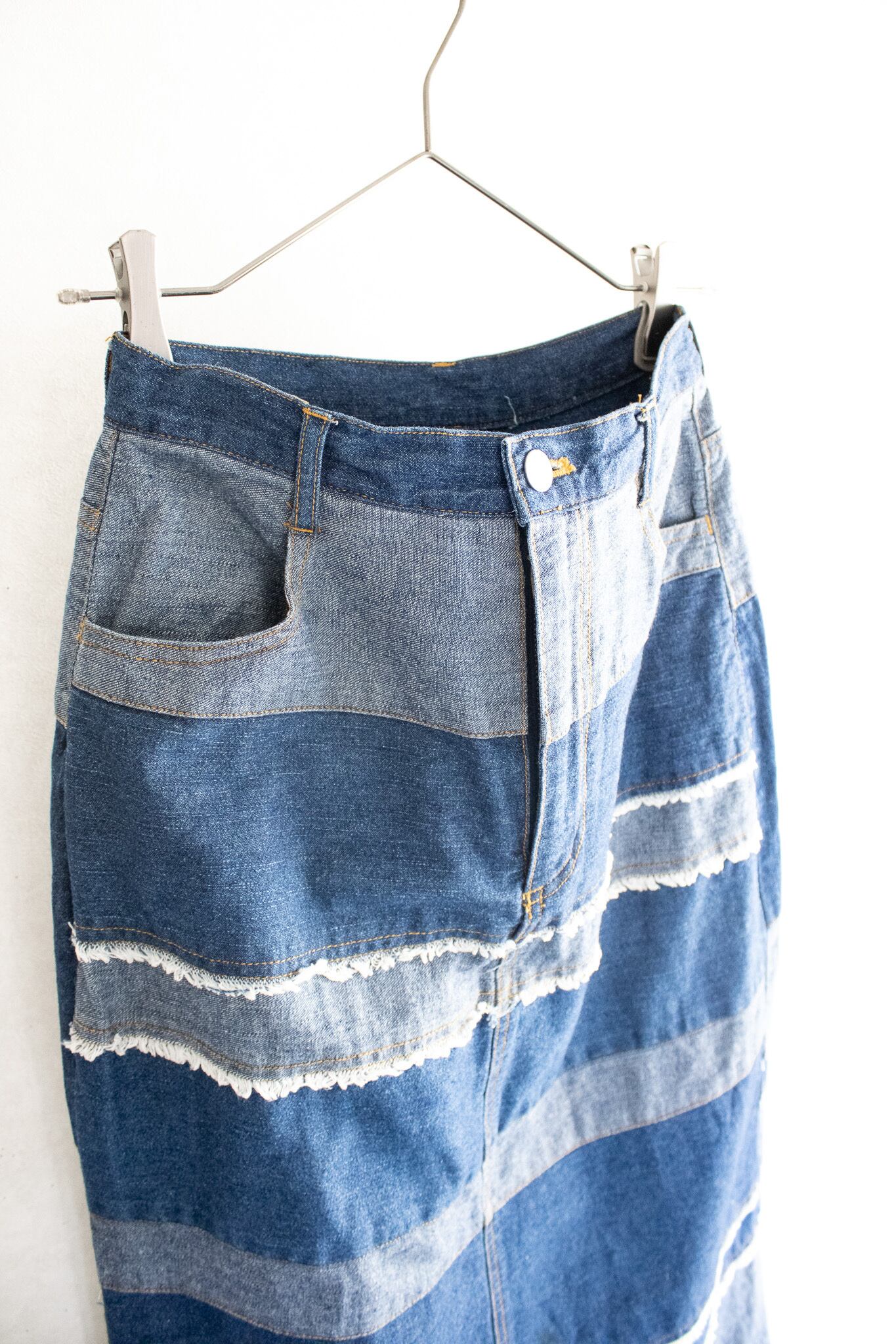 denim stripe skirt [Women's W27]