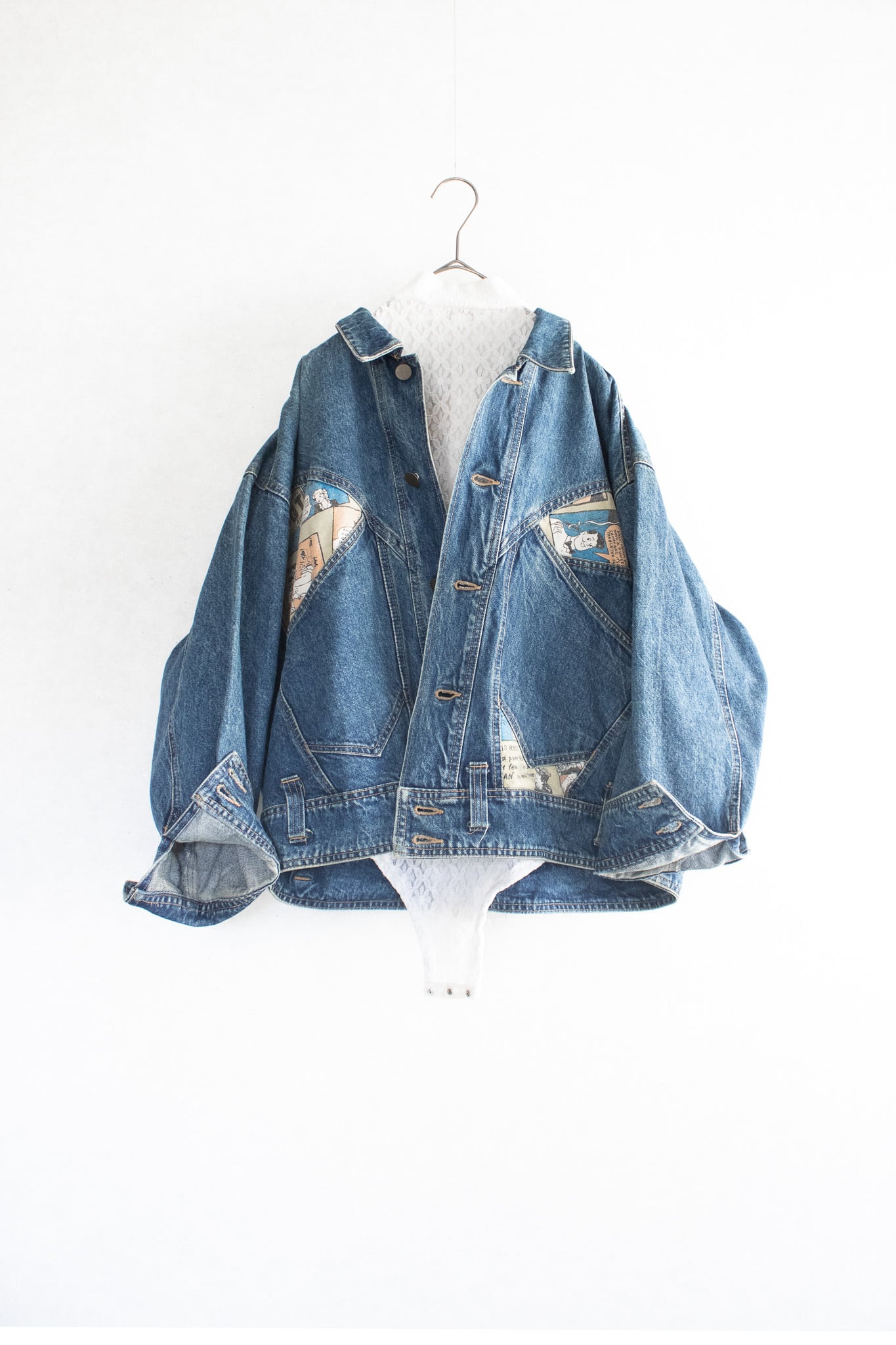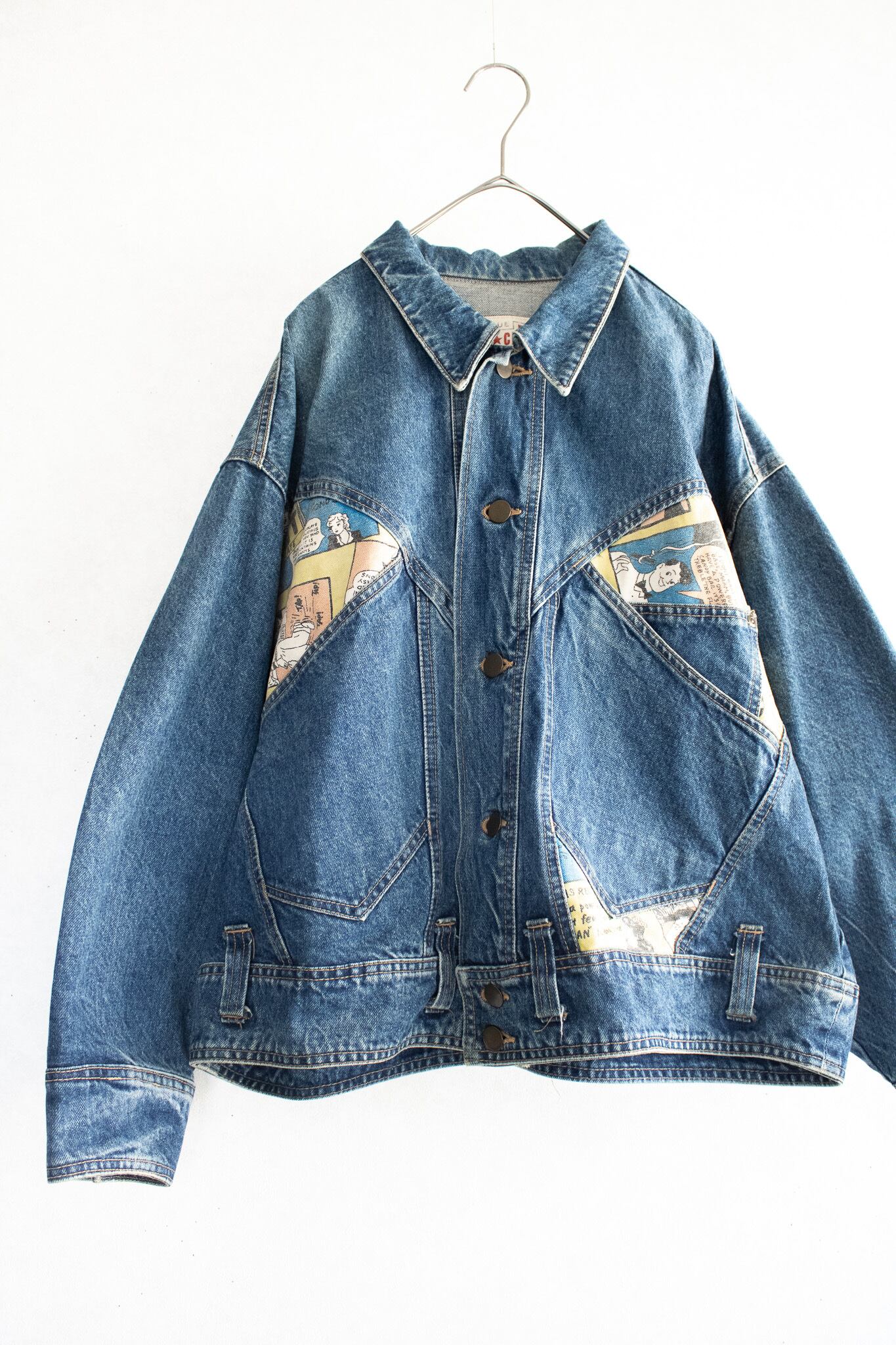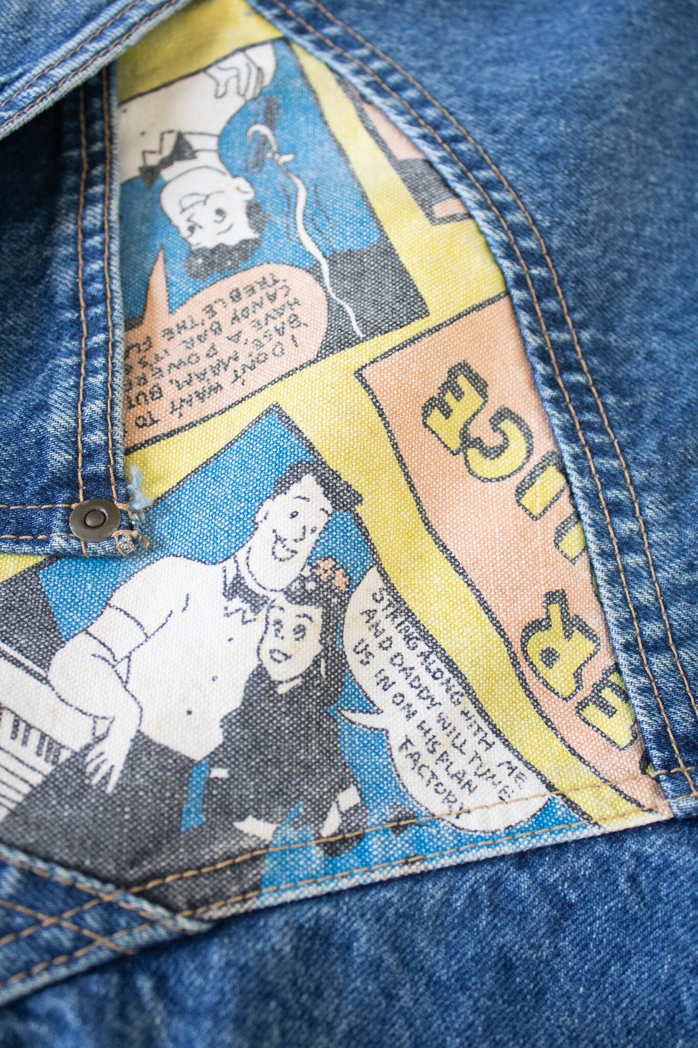 アメコミの柄を使った切替デニム。