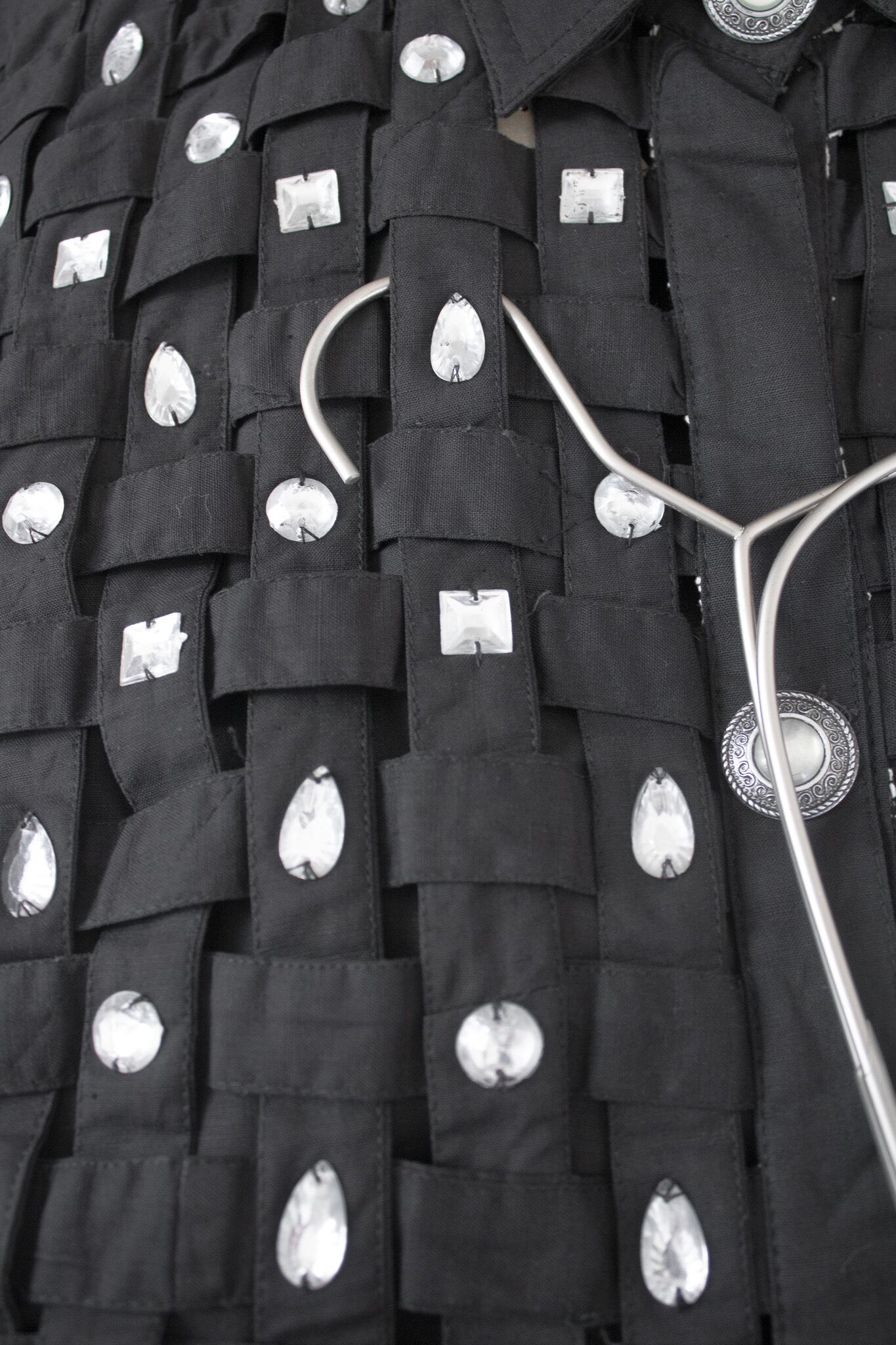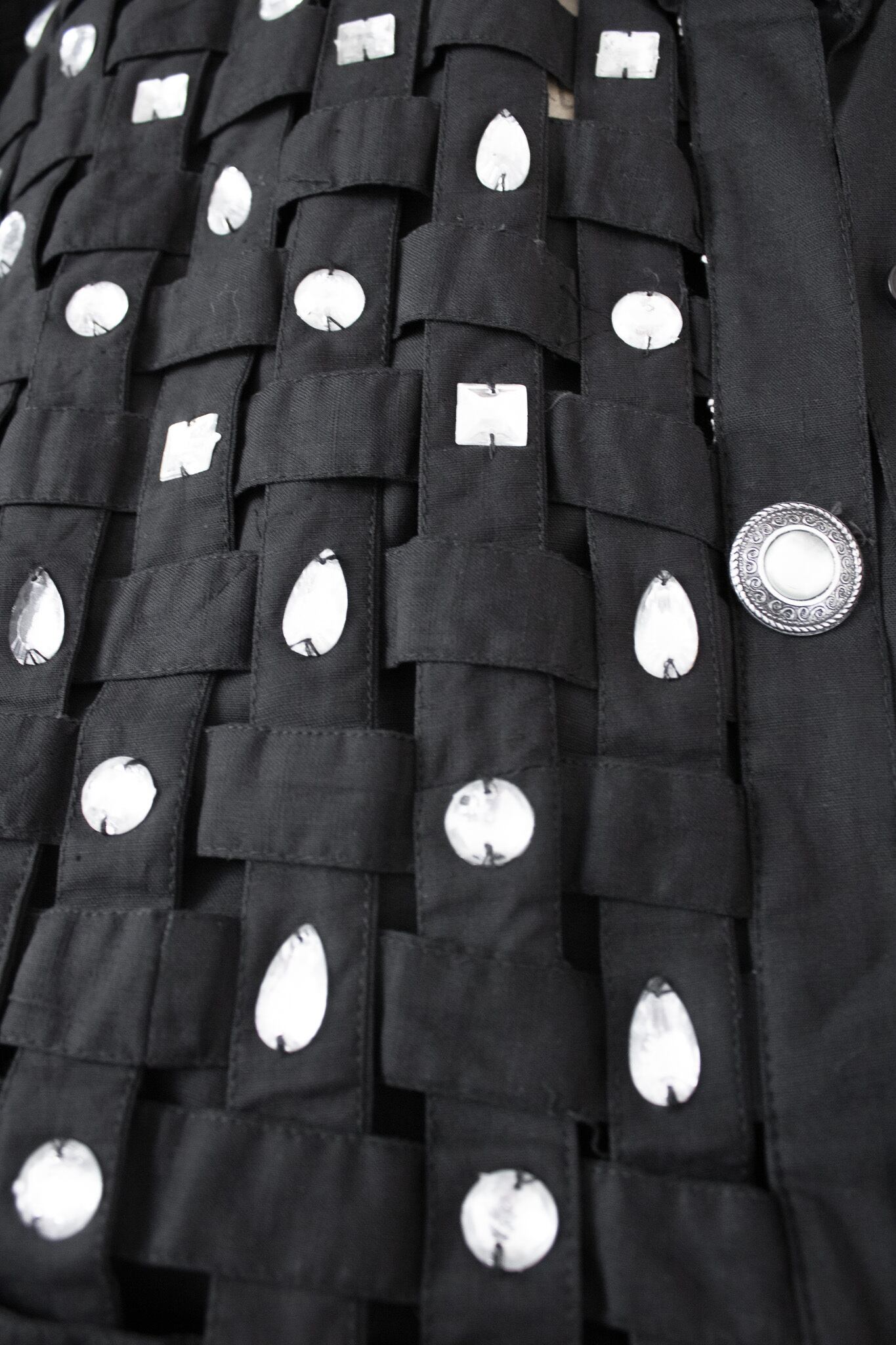 漆黒のコットンブロードを編み込む。