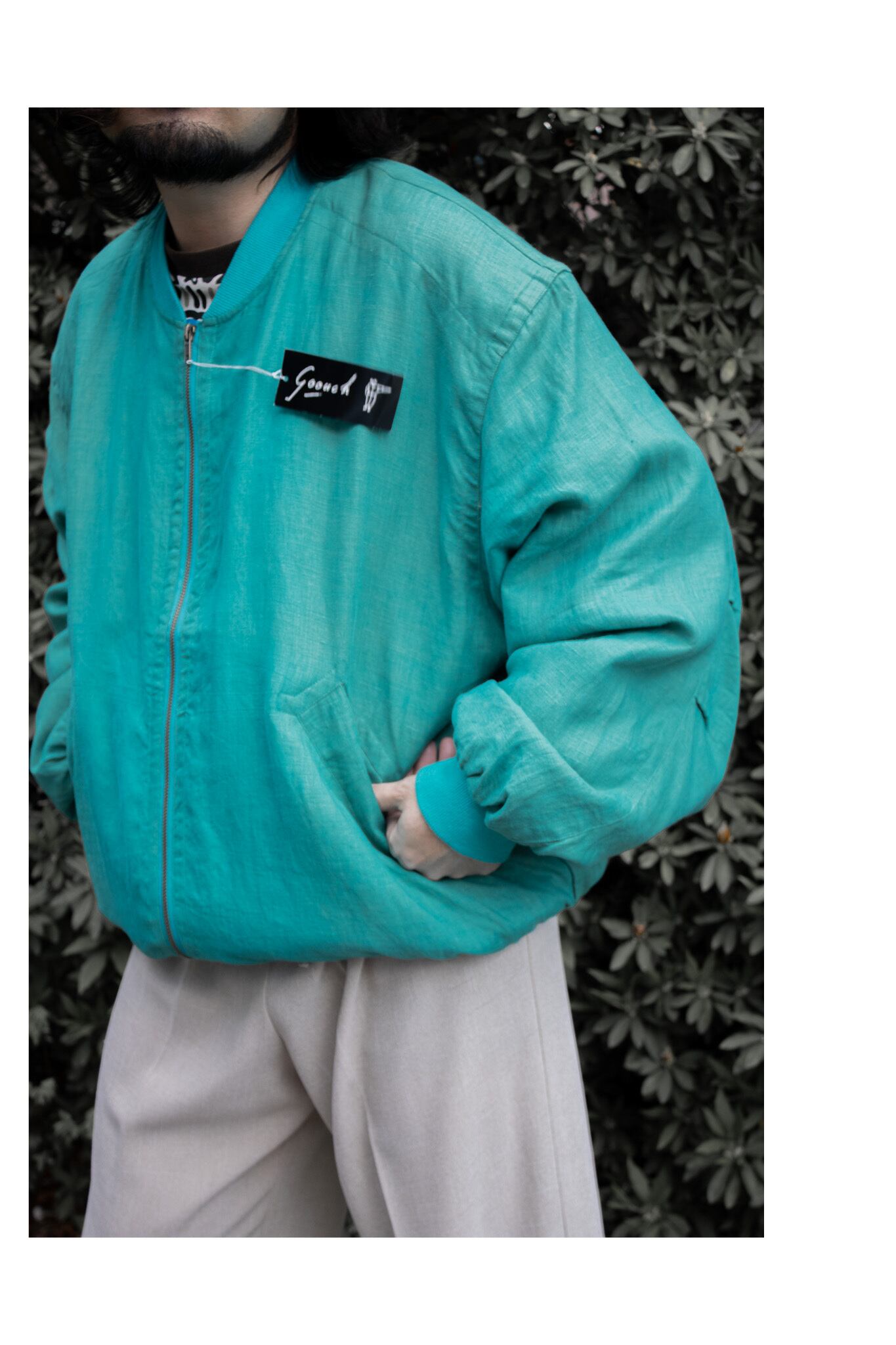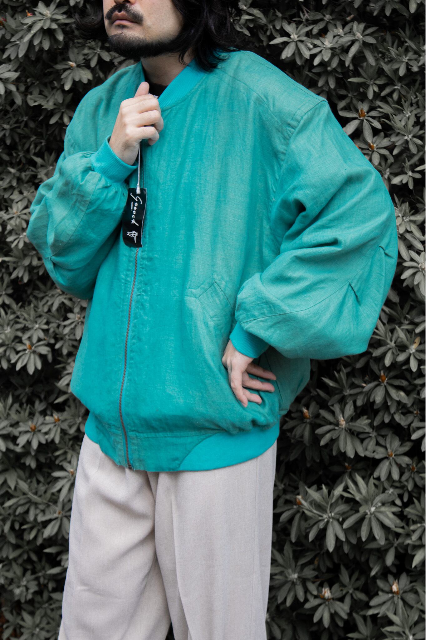 NOS. 1990's "GOOUCH" - linen bomber jacket